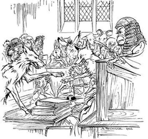Le Loup et le Renard plaidaient l’un contre l’autre par-devant le Singe. Le premier accusait l’autre de lui avoir dérobé quelques provisions, celui-ci niait le fait. Le Singe, qui connaissait de quoi l’un et l’autre étaient capables, ne savait lequel croire; ainsi il se trouvait dans un grand embarras. Voici pourtant comme il s’en tira: après bien des contestations de part et d’autre, il imposa silence aux parties, et prononça ainsi: – Toi, Loup, je te condamne à payer l’amende, parce que tu demandes au Renard ce qu’il ne t’a point pris; et toi, Renard, tu paieras aussi, parce que tu refuses de rendre au Loup ce que tu lui as dérobé. -