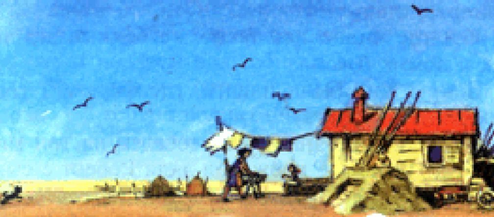 Stepes viesuļi ne vienu reizi vien jau bija apgāzuši fermera Džona vieglo mājokli. Bet Džons nenoskuma: kad vējš bija aprimis, viņš uzslēja mājiņu, krāsni un gultas nolika savās vietās, Ella uzlasīja no grīdas alvas šķīvjus un krūzītes - un atkal viss bija kārtībā līdz jaunam viesulim.