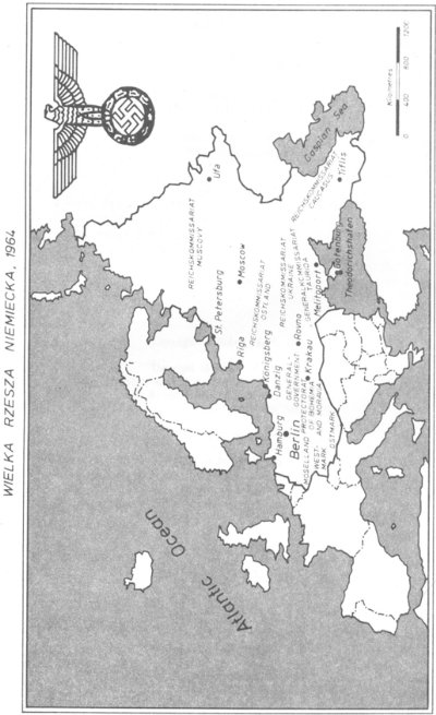 Sto milionów butnych niemieckich panów miało zostać osiedlonych w Europie i obdarzonych władzą opartą na monopolu cywilizacji technicznej oraz niewolniczej pracy zmniejszającej się liczby tubylczej ludności — zaniedbanych, schorowanych, nie umiejących czytać kretynów — po to, żeby mknąc swymi bezkresnymi Autobahnami mogli podziwiać domy partii, muzea czynu zbrojnego, schroniska Kraft durch Freude i Planetarium, zbudowane przez Hitlera w Linzu (jego nowym Hitleropolis). I by przebiegłszy truchtem przez miejscową galerię obrazów, mogli zasiąść nad ciastkiem z kremem i po raz setny z rzędu wysłuchać nagrania „Wesołej wdówki”. Tak miało wyglądać Niemieckie Tysiąclecie, przed którym nawet wyobraźnia nie oferowała dróg ucieczki.