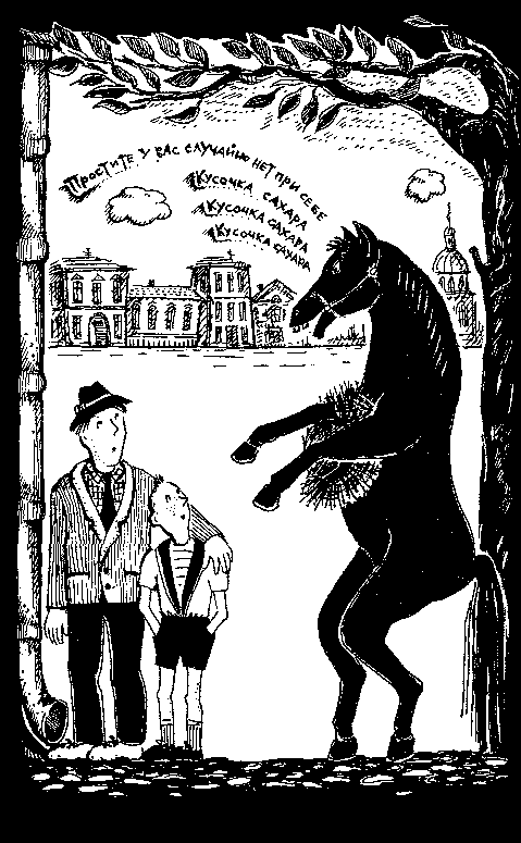 Дядя и племянник обернулись и увидели большого черного коня, который вежливо осведомился: