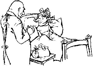 "I am ill," said my little sister to the postman. "I must stay in bed and drink hot milk and look at the pictures in my books. I don't like to stay in bed. I don't want the doctor! Bad doctor!"