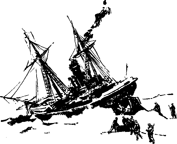 Волны качали пароход с бока на бок, поворачивая его носом против ветра. Якорная цепь натянулась. Внезапный шторм походил на гром среди ясного неба. Штурман Кар взбежал по широким ступенькам трапа на капитанский мостик и взглянул на горизонт.