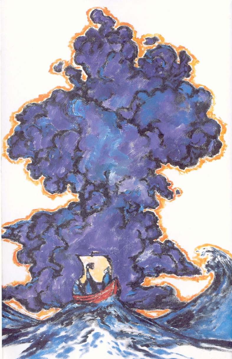 Ветер, который он принес с собой, был неистовым, как дыхание дьявола, мирные морские воды этот вихрь возмутил в одно мгновение. И когда маленькая красная лодка, которую три женщины избрали для своего рискованного путешествия, обогнула острова, защищавшие ее от ветра, и очутилась в открытом море, волны уже бушевали вовсю, огромные, как скалы, высотой футов в двадцать пять — тридцать.