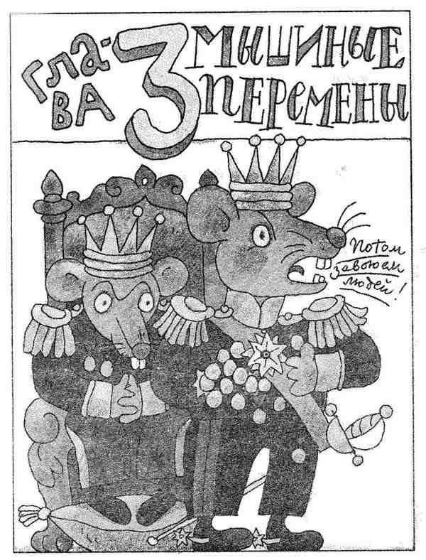 И верно, в мышином обществе произошли большие перемены. Властью в мышином королевстве обладал король – Величайший Кусатель Светлейший Красивый. На его мундире было вышито золотом УОВ. То есть Убивающий Одним Взглядом.