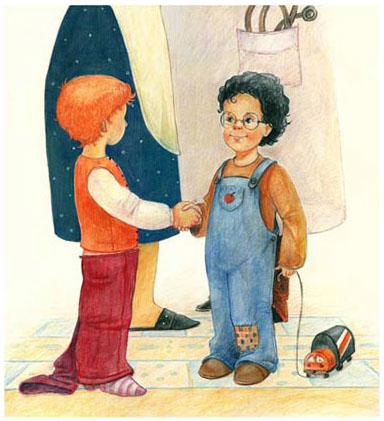 Папа пошёл звонить профессору, а в этот момент к Пете в гости приходит маленький мальчик Коля.