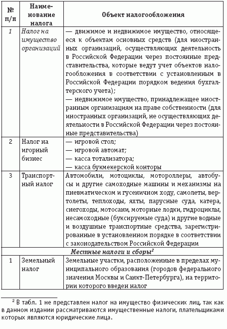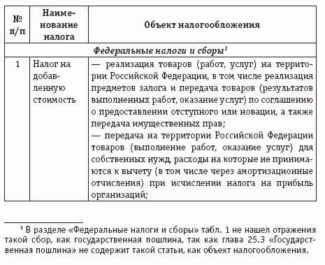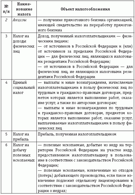 Каждый налог имеет самостоятельный объект налогообложения, определяемый согласно части второй НК РФ (см. табл. 1).