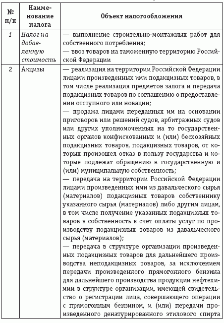 Таблица 1Объекты обложения налогами, установленными в соответствии с НК РФ