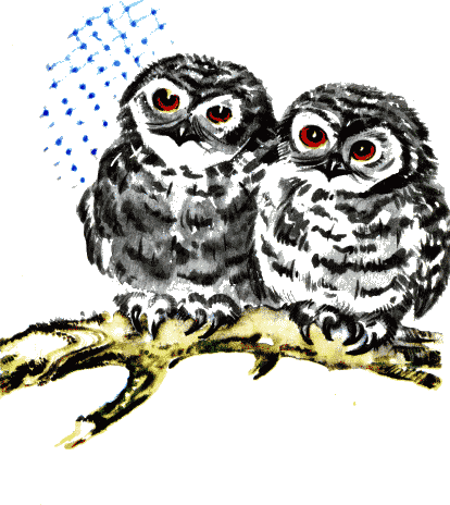 Взгляни на маленьких совят — Малютки рядышком сидят. Когда не спят, Они едят. Когда едят, Они не спят. ЛЕБЕДЁНОК