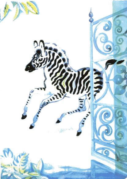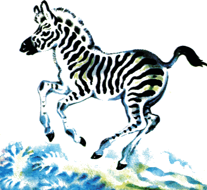 Полосатые лошадки,Африканские лошадки,Хорошо играть вам в пряткиНа лугу среди травы!Разлинованы лошадки,Словно школьные тетрадки,Разрисованы лошадкиОт копыт до головы.