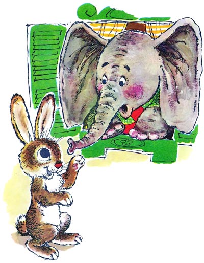 — У-у! — сказал промокший лисёнок, увидев в окошке слонёнка. — Ушастый какой! Да с такими ушами он вполне может быть зонтиком!