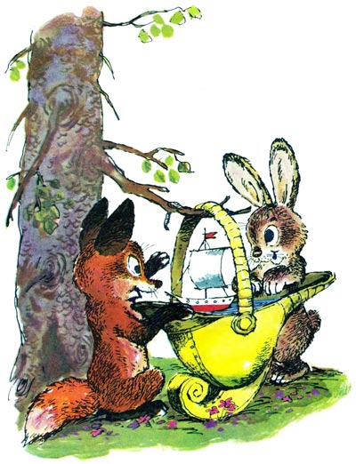 Иногда он разрешает зайчику и лисёнку пускать в каске кораблики.