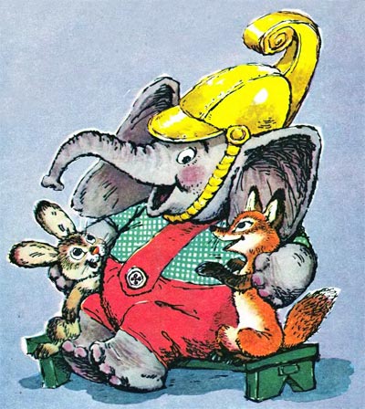 Слонёнок был очень горд. Теперь он ходит в золотой каске и следит за тем, чтобы в лесу не было пожара.