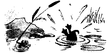 На другое утро Тим сидел на берегу пруда и грелся на солнышке. Вдруг он вспомнил про лягушку и рассердился: «Как она смела кататься верхом на мне!»