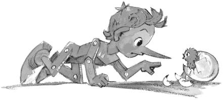 Тогда Буратино вскочил на стул, со стула на стол, схватил молоток и запустил его в голову Говорящему Сверчку.