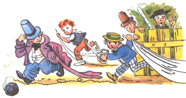 Наши-то портные Храбрые какие: «Не боимся мы зверей, Ни волков, ни медведей!» А как вышли за калитку Да увидели улитку — Испугалися, Разбежалися! Вот они какие, Храбрые портные! ДЖЕННИ