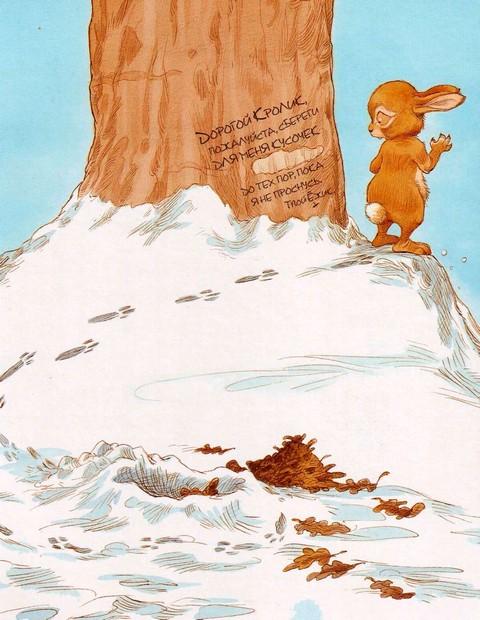 Кролик с удивлением посмотрел на дерево, где Ёжик оставил своё послание.
