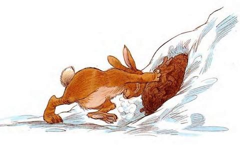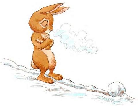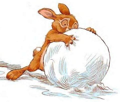 Кролик принялся катать комок по снегу.