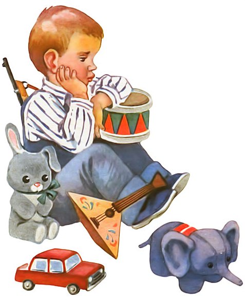 Есть у Вити балалайка,Барабан, ружьё и слон…Есть машина, серый зайка…Отчего ж скучает он?Всё, что только захотите,Вы найдёте у него,Но товарищей у ВитиНет ни одного!