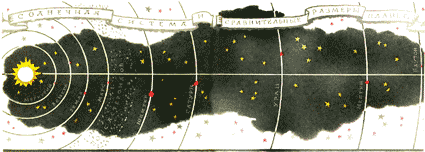 Висят в необъятных просторах Вселенной звёзды. Разбросаны друг от друга на огромные расстояния. Каждая звезда — громадный огненный шар. Одна из звёзд — наше Солнце.