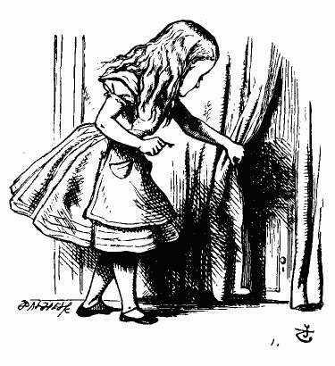Она открыла дверцу и увидела за ней нору, совсем узкую, не шире крысиной. Алиса встала на колени и заглянула в нее – в глубине виднелся сад удивительной красоты. Ах, как ей захотелось выбраться из темного зала и побродить между яркими цветочными клумбами и прохладными фонтанами