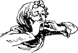Старушка спустила очки на кончик носа и оглядела комнату поверх очков; потом вздёрнула очки на лоб и глянула из-под них: она редко смотрела сквозь очки, если ей приходилось искать такую мелочь, как мальчишка, потому что это были её парадные очки, гордость её сердца: она носила их только «для важности»; на самом же деле они были ей совсем не нужны; с таким же успехом она могла бы глядеть сквозь печные заслонки. В первую минуту она как будто растерялась и сказала не очень сердито, но всё же довольно громко, чтобы мебель могла её слышать: