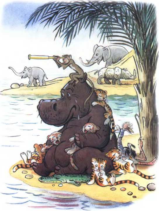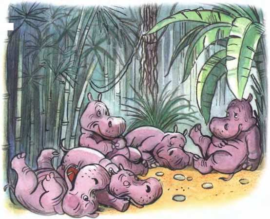 А рядом бегемотикиСхватились за животики:У них, у бегемотиков,Животики болят.