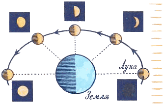Почему Луна видна с Земли то целиком, то половинкой, то узким серпиком?