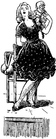 Волна восторга прокатилась по залу. Воодушевленная приветствиями, Рена сорвала с морды очки, бросила их на пол и стала кривляться, показывая, что она самая обезьянистая из всех обезьян — мартышка.