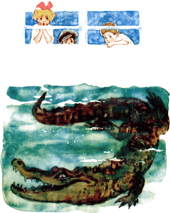 Даже ихнее дитя ростом с папу с нашего. Всех прошу посторониться, разевай пошире рот,— для таких мала страница, дали целый разворот. Крокодил. Гроза детей. Лучше не гневите. Только он сидит в воде и пока не виден. Вот верблюд, а на верблюде возят кладь и ездят люди. Он живёт среди пустынь, ест невкусные кусты, он в работе круглый год — он, …верблюд, ………………рабочий скот. Кенгуру. …………Смешная очень. Руки вдвое короче. Но за это ……………у ней ноги вдвое длинней. Жираф-длинношейка — ……………………………ему …………………………………никак для шеи не выбрать воротника. Жирафке лучше: ……………………жирафу-мать есть ……жирафёнку …………………за что обнимать.