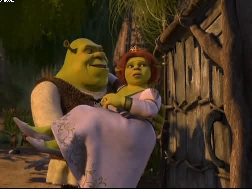 Шрек снова подхватил Фиону на руки и направился к двери домика.