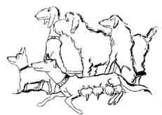 Теперь мы всё время гуляем вместе. Я со своим Повелителем-хозяином, а Слипперс с Повелительницей-мисс. Наши Повелители ходят вместе. Только не пойму зачем? Их ведь никто не водит на поводке. Они идут впереди, а мы со Слипперсом сзади. Теперь мы каждый раз устаём. Под конец мы вообще еле тащимся. Раньше хозяин никогда не делал такой долгой «прогулки-в-парке-на-поводке». И Слипперс говорит, что его хозяйка тоже не делала.