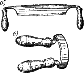 1) инструмент, употребляемый при работах;
