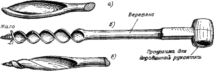 Молоток – бывает различных размеров; ручник (рис. 12) – небольшой стальной молоток, насаживаемый на деревянную рукоятку, имеет один конец плоский – для забивки, а другой – оттянутый с прорезью для вытаскивания гвоздей.