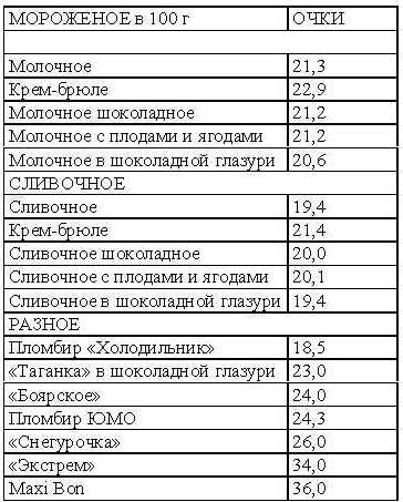 Для любителей сладостей приводим ниже таблицу содержания углеводов в мороженом.