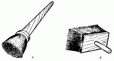 Рис. 4. Инструменты для смачивания стены водой: а – кисть; б – щетка