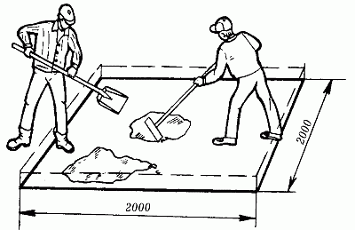 Площадка для замеса растворов (рис. 7) нужна для того, чтобы в ящик с раствором не попадали посторонние предметы. Делают ее из досок в форме прямоугольника или квадрата, по краям которого выполняют небольшие бортики.