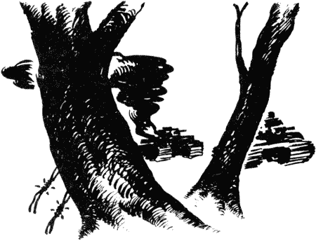 ИСТРЕБИТЕЛИ ТАНКОВДождь моросил непрерывно. Небо и земля казались однообразно-серыми, неприглядно-тоскливыми. Только вспаханный склон высоты глянцевито отсвечивал. На ратном поле среди подбитых черных танков с крестами на башне валялись бороны, покореженные сеялки…