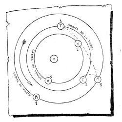 — Desde aquí nos dirigiremos a Marte y lo encontraremos acá, luego regresaremos a la Tierra, que, durante ese lapso, habrá recorrido más de la mitad de su ruta anual y habrá de encontrarse más o menos aquí…