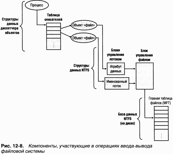 Наиболее очевидный способ доступа приложения к файлам – вызов Windows-функций ввода-вывода, например CreateFile, ReadFile и WriteFile. Приложение открывает файл с помощью CreateFile, а затем читает, записывает и удаляет его, передавая описатель файла, возвращенный CreateFile, другим Windows-функциям. CreateFile, реализованная в Kernel32.dll, вызывает встроенную функцию NtCreateFile и формирует полное имя файла, обрабатывая символы «.» и «…» и предваряя путь строкой «\??» (например, \??\C:\Daryl