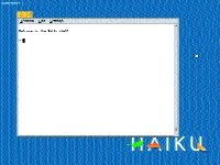 Я выбрал первый вариант - он оказался самым простым, поскольку BeOS у меня уже стояла. Достаточно было создать раздел bfs[Файловая система, используемая в BeOS], подмонтировать образ диска Haiku при помощи утилиты imagemounter и скопировать все файлы с подмонтированного диска в этот раздел. Можно загружаться! Честно говоря, не ожидал, что после таких простых действий все заработает, но, как оказалось, тревожился я зря. Haiku запустилась (рис. 8) и порадовала меня своим рабочим столом (даже в цвете!) и открывшимся окном терминала[Haiku, как и BeOS, - система со встроенным графическим интерфейсом, и для работы с командной строкой требуется запустить терминал].