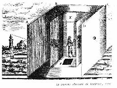 Совершенно очевидно, что задолго до того, как возникла идея закрепления изображения на светочувствительной поверхности, должен был быть сконструирован прибор, при помощи которого можно было бы получить, - хотя бы еще и не в закрепленном виде, - достаточно четкие изображения или, может быть вернее, отображения предметов внешнего мира. Идея такого прибора возникла еще y гениального итальянского художника и ученого эпохи Возрождения - Леонардо да Винчи (1452-1519). Он одним из первых обратил внимание на то, что если в ставне окна сделать небольшое отверстие, то на стене, противоположной окну, появляется изображение внешних предметов.