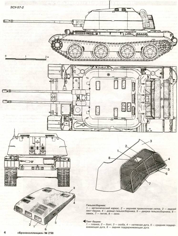 Открытая сверху башня сварной конструкции располагалась на шариковой опоре над вырезом подбашенного листа крыши корпуса. Для установки пушки в передней ее части имелась амбразура. Задняя стенка башни с окном для выхода гильз была сделана съемной, что создавало удобства при монтаже пушки. В походном положении верхний вырез башни закрывался складным брезентовым тентом с 13 смотровыми окнами из плексигласа. Чтобы открыть тент, достаточно было отстегнуть ремни и отбросить его назад. Для сбора стреляных гильз и обойм,подаваемых транспортером пушки через окно в задней стенке, снаружи кормовой части башни был установлен гильзосборник.