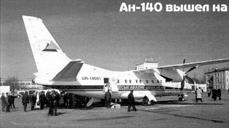 29 марта в Украине произошло событие, какое еще не случалось в новейшей истории страны: началась регулярная коммерческая эксплуатация первого самолета, созданного нашей авиационной промышленностью. Региональный Ан-140 перевез первых пассажиров по маршруту Одесса-Киев. Воздушные путешественники были немало удивлены ожидавшими их сюрпризами; новым комфортабельным воздушным судном, особым сервисом на борту и, конечно, торжественной встречей. В столичном аэропорту «Жуляны» их ожидали руководители министерств транспорта и промышленной политики Украины, Департамента авиационного транспорта, ведущих предприятий авиапрома, сотрудники СМИ. Самолет начали эксплуатировать «Одесские авиалинии», взяв его в лизинг у компании «Укравиализинг».