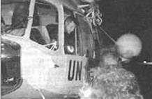 31 июля пресс-центр Министерства обороны Украины сообщил, что в соответствии с программой миссии ООН в Сьерра-Леоне шесть экипажей украинского миротворческого 20-го отдельно го вертолетного отряда выполнили ночные полеты на трех Ми-8МТ. Полеты проводились с целью поддержании у экипажей навыков пилотирования в темное время суток. На фото: командир вертолета летчик 1-го класса м-р Виктор Опанасюк готовится к выполнению ночного полета.