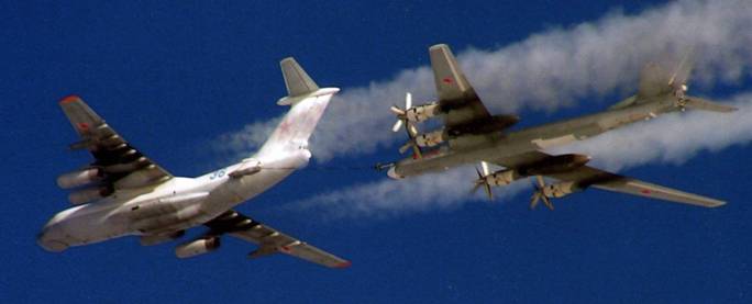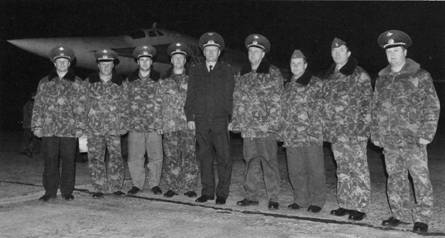 Генерал-майор А.Д. Жихарев с экипажами ракетоносцев Ту-160 после дальнего полета.