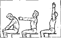 Инструктору. На занятиях обязательно призывайте к практическому разучиванию «позы кучера на дрожках», проконтролируйте правильность ее у каждого занимающегося. Распространенные ошибки: садятся не на край стула, а на все сиденье, что приводит к затеканию ног, женщины не могут достаточно широко расставить ноги; недостаточно горбят спину и не до конца опускают голову, излишне наклоняются вперед, что приводит к болям в шее, опираются предплечьями на бедра. Привлекайте занимающихся к выявлению ошибок в принятии позы. Кроме непосредственной пользы в освоении позы, это снимает боязнь занятий в присутствии других людей не только у тех, кто демонстрирует позу, но и у тех, кто это наблюдает.