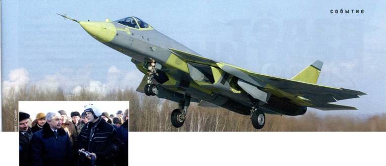 29 января в Комсомольске-на-Амуре состоялся первый полет первого летного образца Перспективного авиационного комплекса фронтовой авиации (ПАК ФА), создаваемого компанией «Сухой» по программе истребителя пятого поколения. Машину пилотировал летчик-испытатель ОАО «ОКБ Сухого» заслуженный летчик-испытатель России Сергей Богдан. Взлет с заводского аэродрома КнААПО состоялся в 11.19 местного времени (в Москве в это время было 4.19 утра). Полет продолжался 47 минут и завершился мягкой посадкой. В первом полете прототип ПАК ФА сопровождал двухместный истребитель Су-27УБ, с которого велась видео- и фотосъемка новой машины.