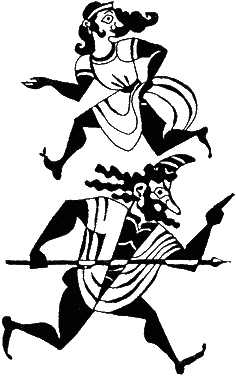 Раннее утро. Улица в Афинах. Еврипид и Мнесилох подходят к дому Агафона.