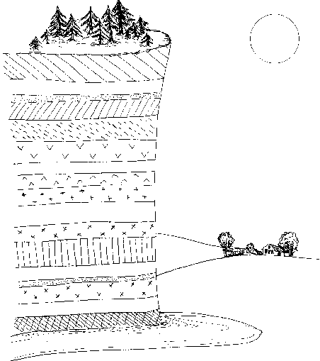 Самыми крупными подразделениями геохронологической шкалы являются эоны; хорошо известные вам палеозой, мезозой и кайнозой – это эры, на которые подразделяется последний из эонов – фанерозой (от греческого «фанерос» – видимый, явный, и «зоэ» – жизнь), начавшийся 0,54 млрд лет назад. Эоны, предшествующие фанерозою, – протерозой (0,54-2,5 млрд лет) и архей (2,5-4,5 млрд лет) – часто объединяют под названием криптозой («криптос» – по гречески скрытый), или докембрий (кембрий – самый первый период фанерозоя). Фундаментальное разделение геохронологической шкалы на фанерозой и докембрий основано на наличии или отсутствии в соответствующих осадочных породах ископаемых остатков организмов, имевших твердый скелет. Первая половина архея, катархей – время, из которого осадочные породы не известны по причине отсутствия тогда гидросферы. Последний отрезок докембрия, венд – время появления бесскелетных многоклеточных животных (рисунок 2).