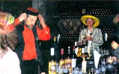 Мы движемся дальше и попадаем в коридор, в стены которого вмурованы бочки. На стеллажах — запыленные бутылки, ждущие своего часа и своего ценителя. Впрочем, и мы уже вот-вот войдем в число таких ценителей - коридор привел нас в просторную залу, тоже со сводчатыми потолками и кирпичными стенами. Очень органично смотрятся тут винные бочки, превращенные в столы. На каждой — зажженная свеча, четыре бутылки разного вина, причем каждому вину соответствует свой фужер. Эрих рассказывает о каждом сорте, предлагая в заключение отведать тот, где этикетка дополнена его собственным портретом: каждый сезон он объявляет одно вино «своим любимым». Романтичность обстановки, прекрасные виноградные вина да еще этот маскарад — всего этого достаточно, чтобы посылались шутливые тосты. Но у Эриха припасен еще один аттракцион.